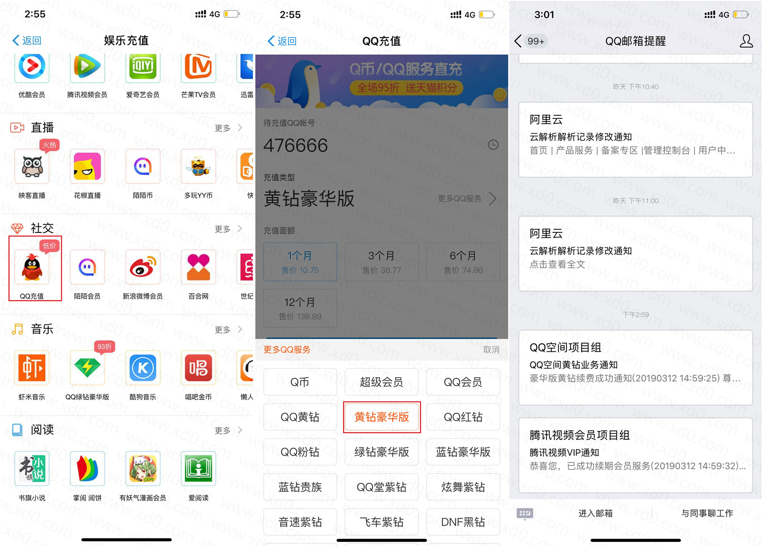 支付寶APP->充值中心->充值->社交QQ充值->更多QQ服務(wù)->選豪華黃鉆