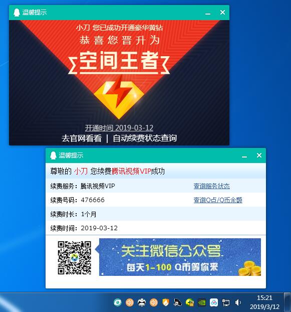 頁面說是豪華黃鉆,其實(shí)充值是送1月騰訊視頻的,小刀剛親測到賬