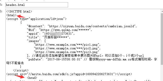 復(fù)制上面的代碼,還有一個(gè)頁頭的代碼,我們一起加到這里面,如圖所示